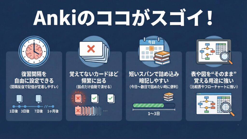 私がAnkiを使用していて「ここがスゴイ!」と思ったのは以下の4点です。