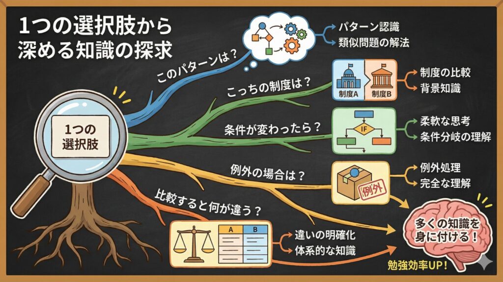 「問題を掘り下げる」と、1つの選択肢から3〜4個の知識が取れる!