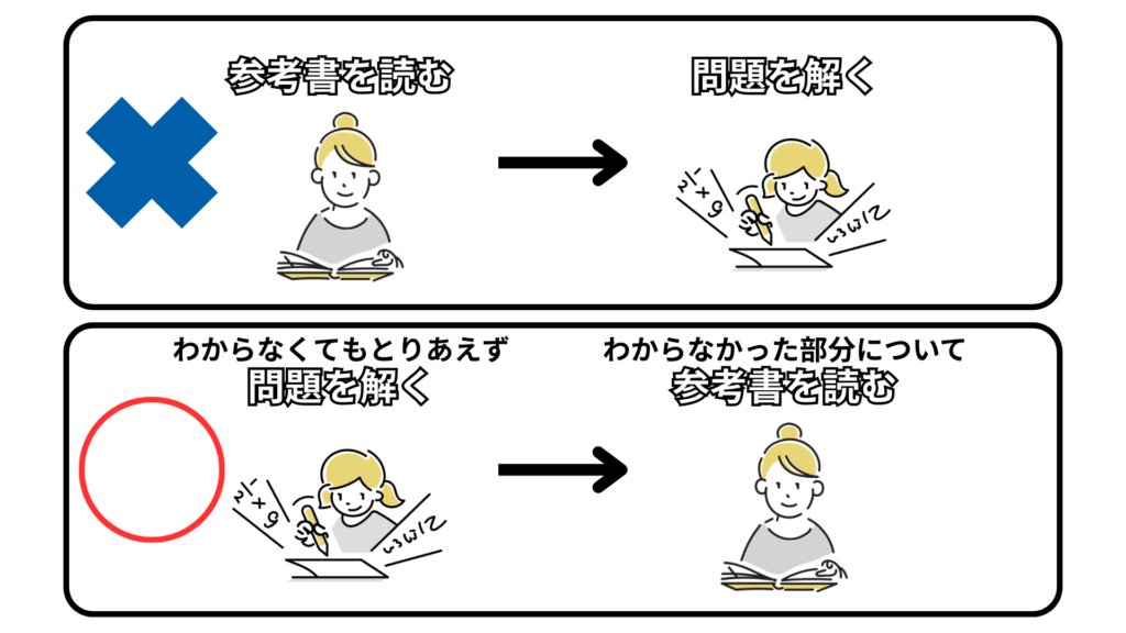 なので、「問題集→参考書」という順番で勉強を進めることに違和感を感じてしまう人もいると思います。