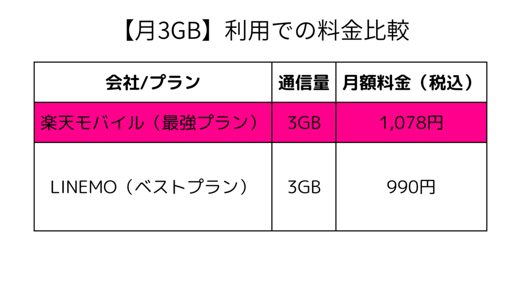 実は、3GBの利用ではLINEMOの方が安いです。