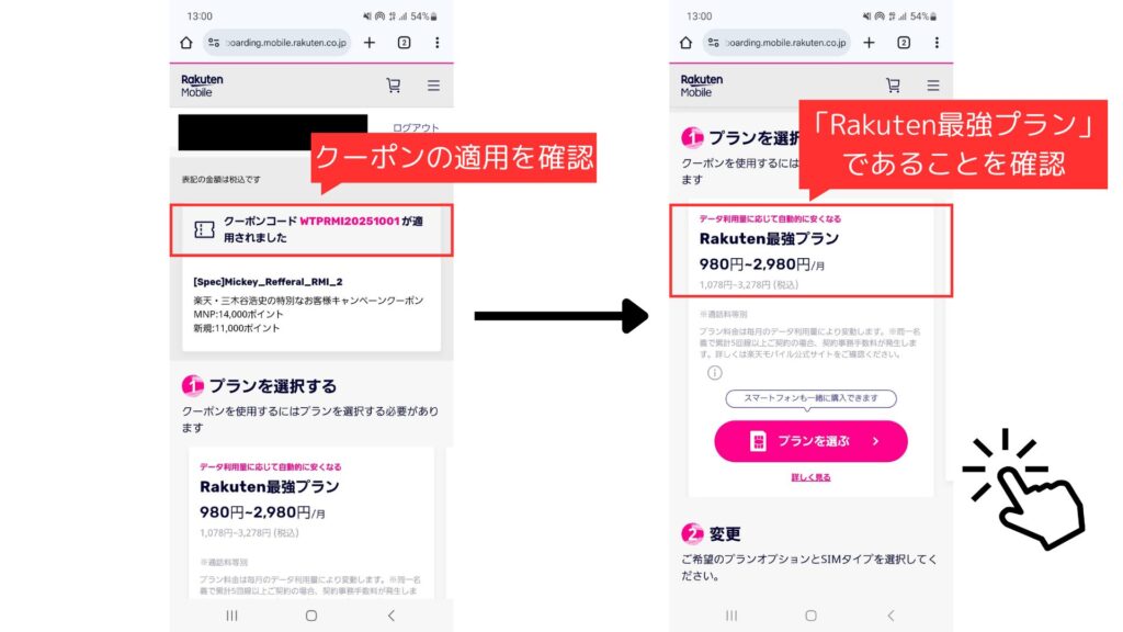 「Rakuten最強プラン」を選択してください。