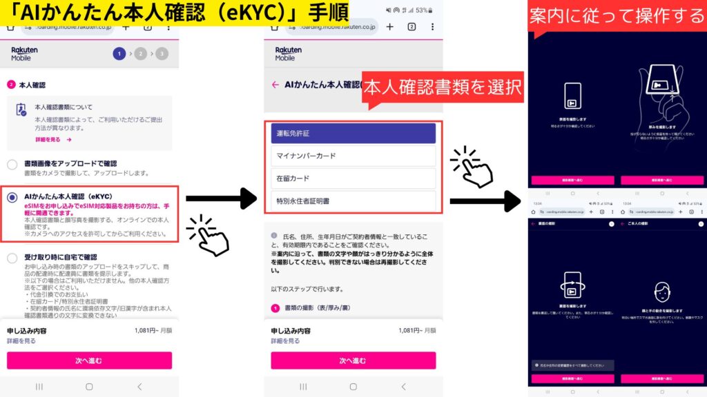 - AIかんたん本人確認(eKYC)→今回eSIM申し込み+eSIM対応スマホを持っていれば超簡単