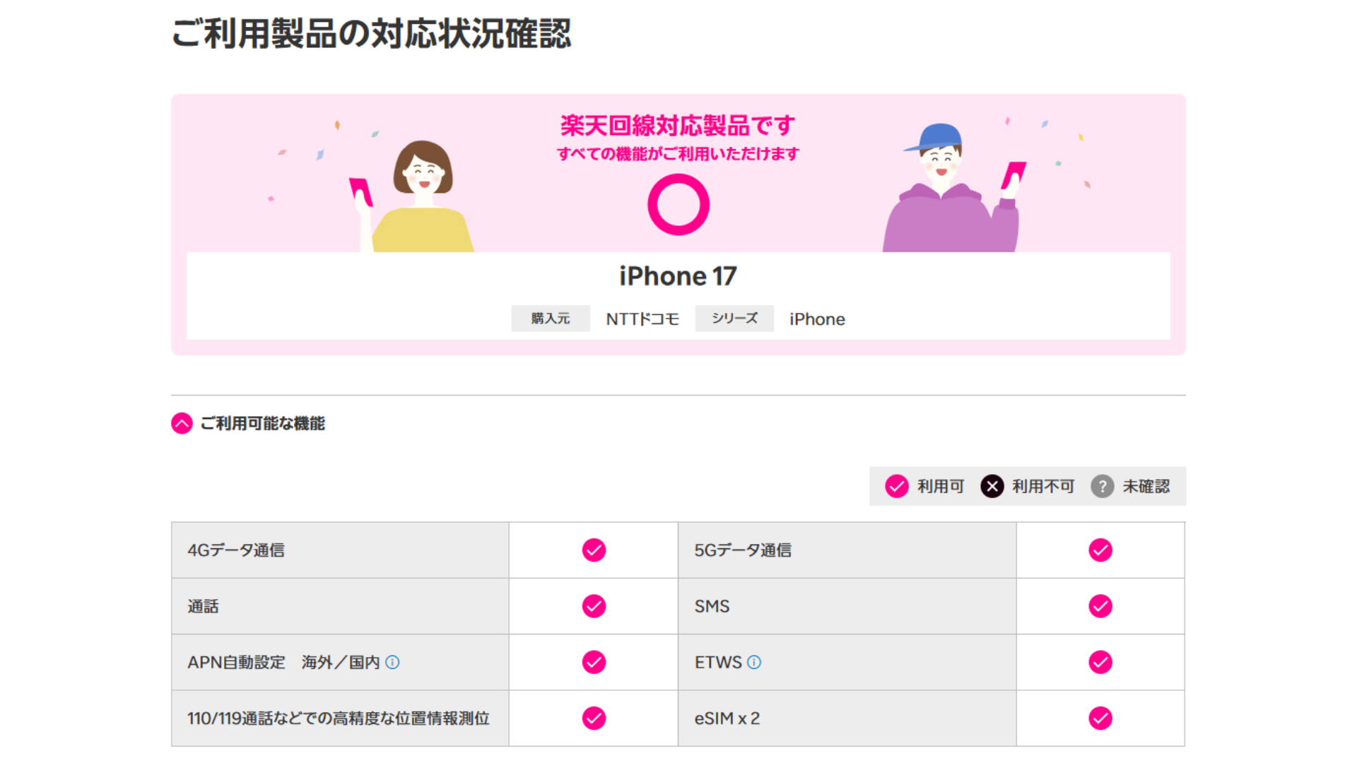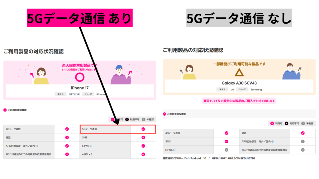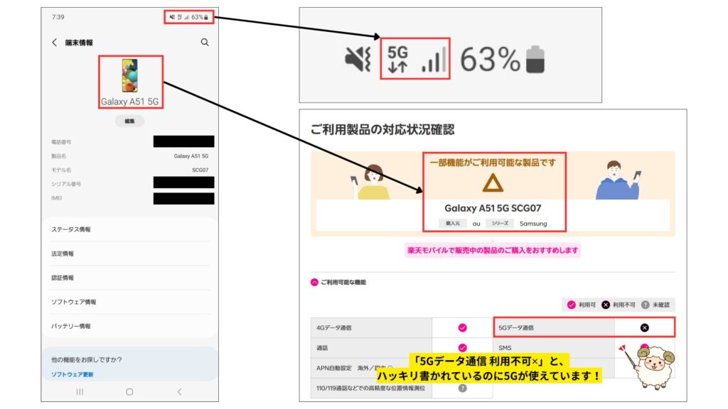 Webが開くか/4G・5G表示/SMSが届くか…などを確認。
