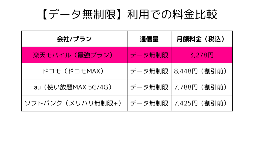 しかし楽天モバイルは、これまで何度も解説していきたようにデータ無制限です。