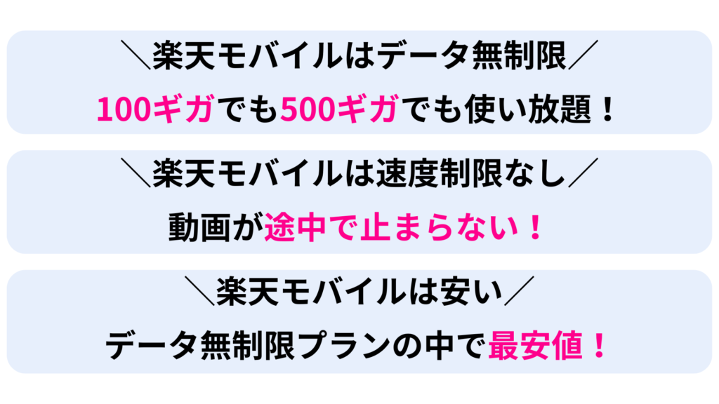 楽天モバイルには多くのメリットがありますが、3大メリットは以下の通りです。