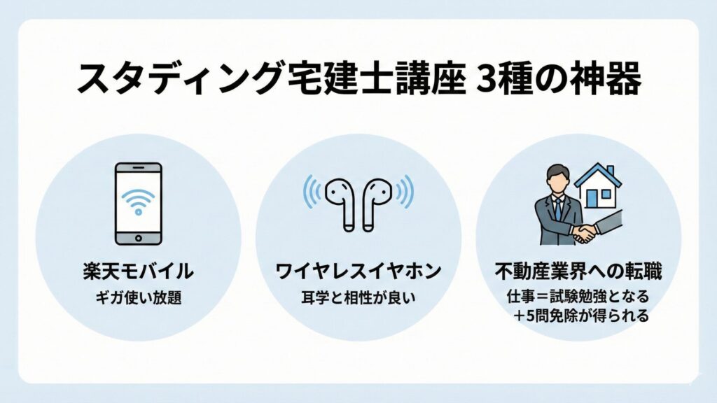 スタディング宅建士講座で勉強するなら、先に取り入れておきたい「3種の神器」があります。